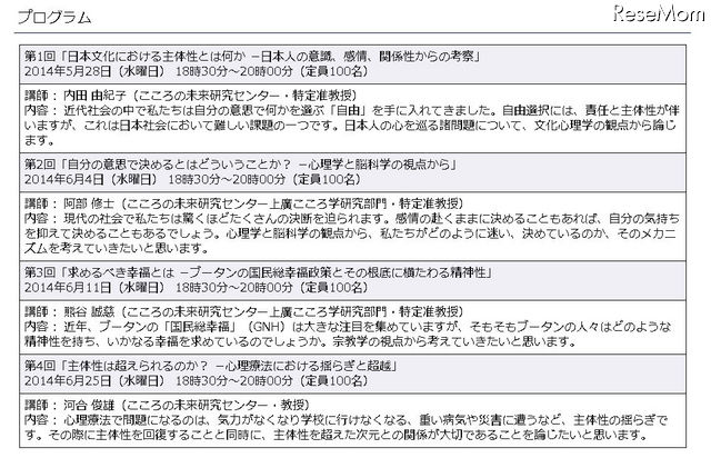 なお本講演は全4回の連続講演となるが、1回のみ参加も可能となっている。定員は各回100名。