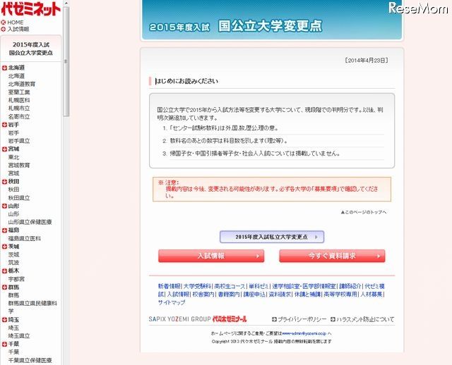 代々木ゼミナール:入試情報